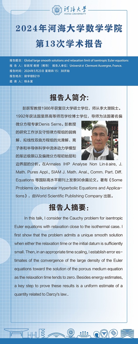 BETWAY必威第13次学术报告:Global large smooth solutions and relaxation limit of isentropic Euler equations