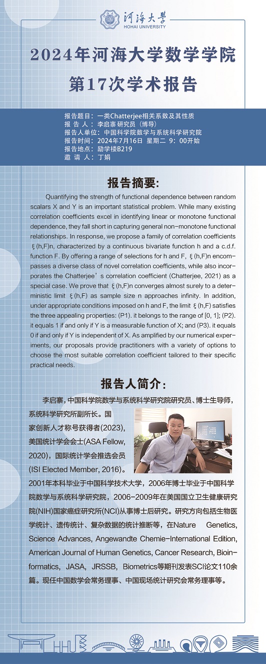 BETWAY必威第17次学术报告:一类Chatterjee相关系数及其性质