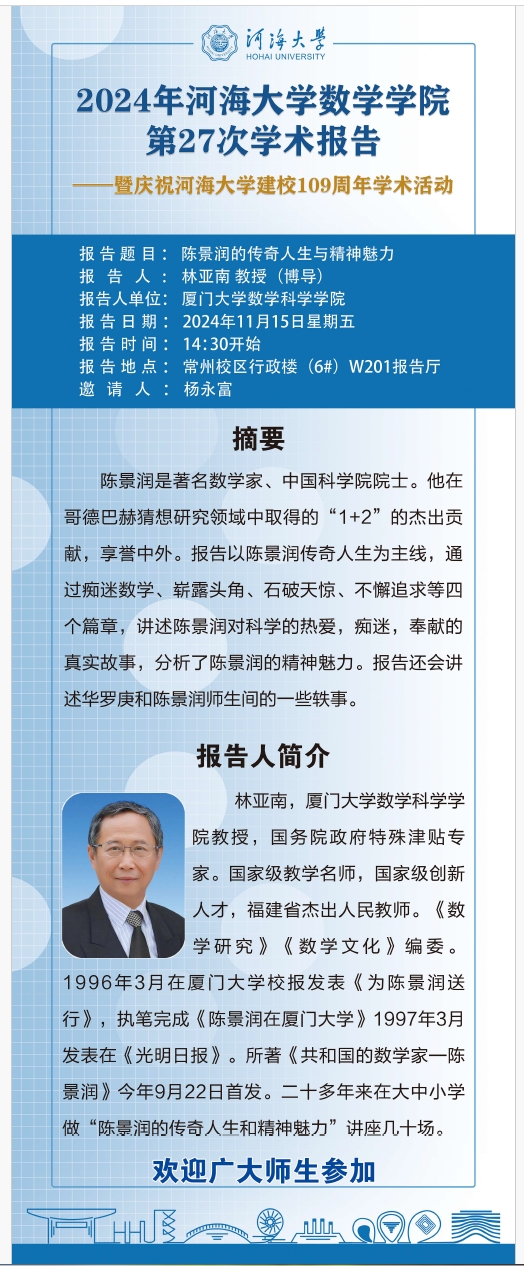 BETWAY必威第27次学术报告:陈景润的传奇人生与精神魅力