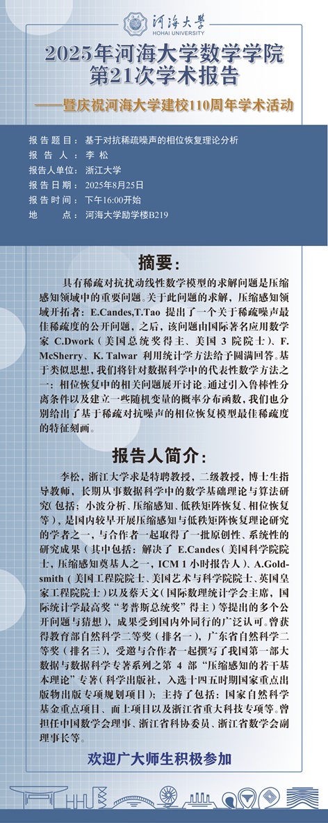 BETWAY必威第21次学术报告:基于对抗稀疏噪声的相位恢复理论分析
