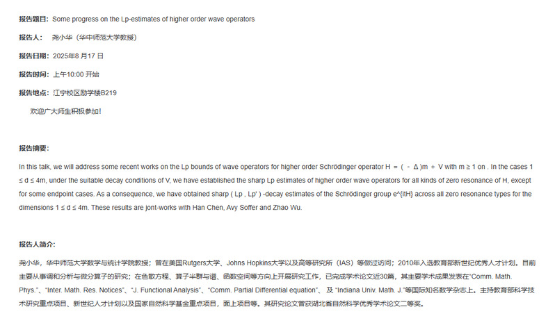 BETWAY必威第20次学术报告:Some progress on the Lp-estimates of higher order wave operators