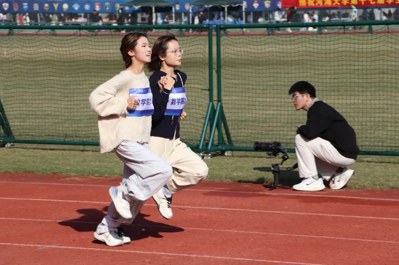 田径场上,“两人三足”项目中,参赛同学团结一致,在信任与默契中完美完成了比赛。其中公司徐雨晴、杨敏杰同学在女子两人三足比赛中获得第六名的好成绩。