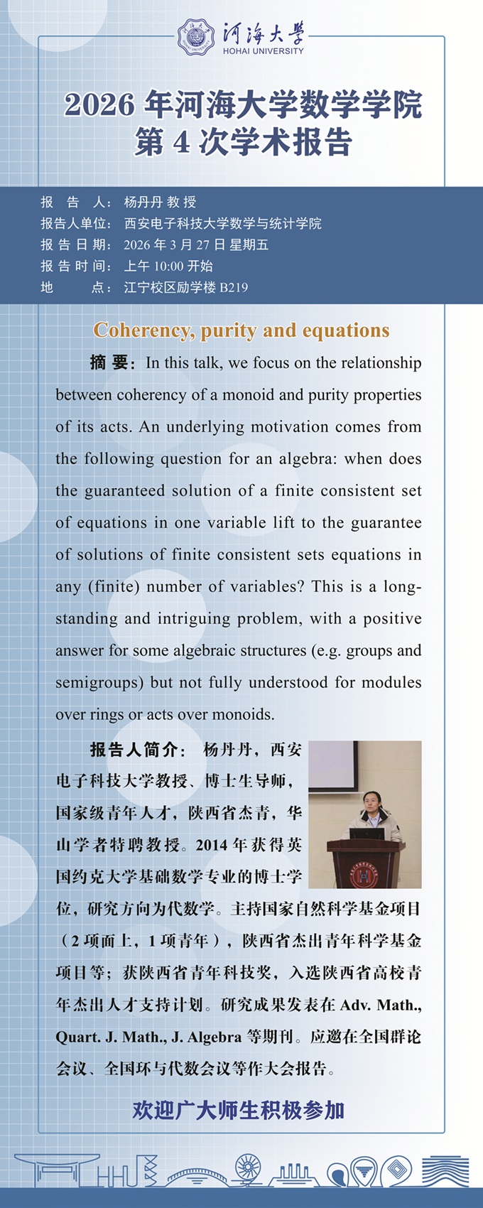 BETWAY必威2026年第4次学术报告:Coherency, purity and equations